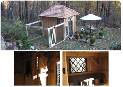 Schuster Landscaping is diversified in woodworking projects such as this Deluxe Chicken Coop. No small task, this coop is more than "just for the birds!" From the ground up, this coop has features such as antique windows, 100% rough-cut hand-built local lumber, a mezzanine roof top, and hand chiseled joints. A full 25 photo presentation of this Deluxe Chicken Coop can be seen here in our gallery.